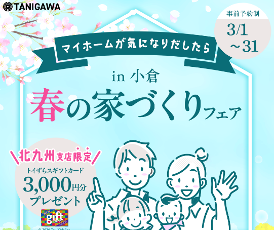 3/1~3/31 事前予約制、小倉南区にて無人見学会を開催🏠自然素材で作った谷川建設オリジナルグッズプレゼントも🙌