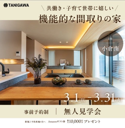 3/1~3/31 事前予約制、小倉南区にて無人見学会を開催🏠自然素材で作った谷川建設オリジナルグッズプレゼントも🙌