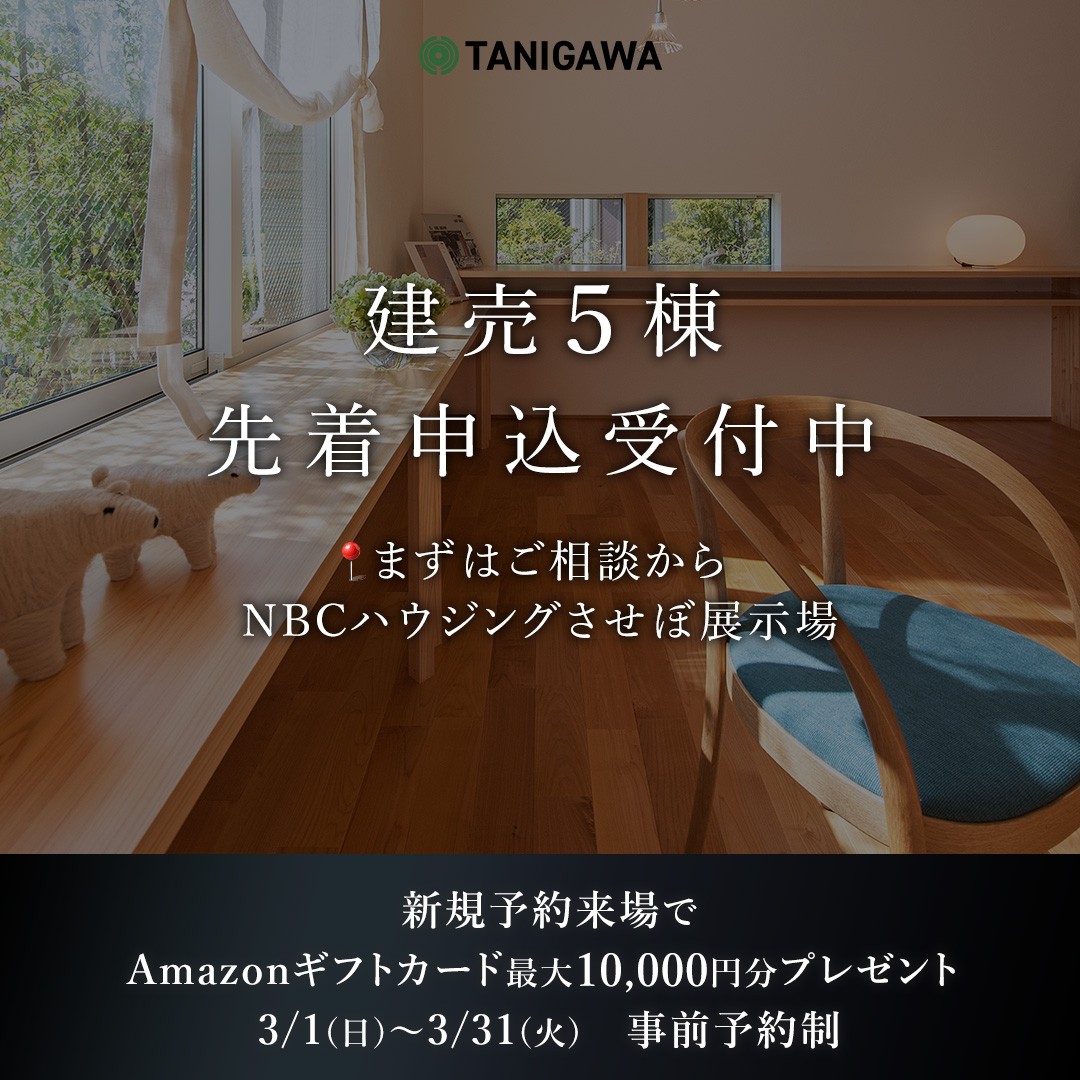 | ご来場予約特典 | 【WEB予約】+【お住まい計画アンケートへのご回答】でAmazonギフトカード10,000円分 |