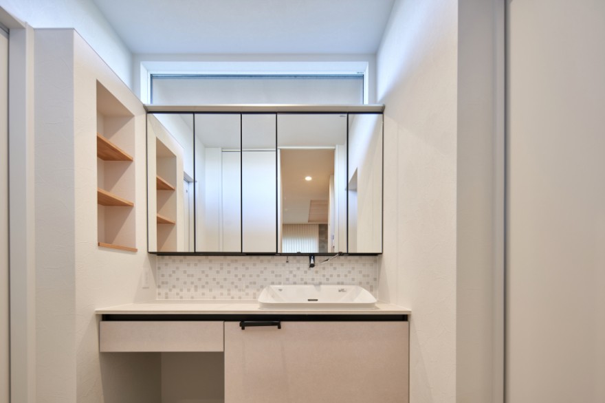 ↓二人並んでも身支度できる幅広い洗面台。まるでホテルのような仕様に朝から気分が上がります。