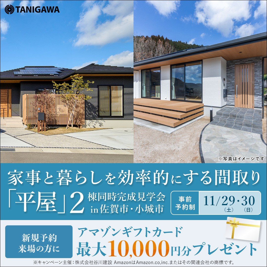 | ご予約 | 完全予約制の見学会は、WEBからのご予約がお得です。下記「見学予約はこちら」をお選びください。 ※『見学に際しての要望や家づくりに関する質問』のところに、見学希望の住宅を番号にて必ずご入力ください。 電話でのご予約も承っております。 ☎0120-035-594(谷川建設 佐賀支店 ※火・水社休日) ※詳しい場所に関しましては当日までに、営業担当がご案内させていただきます。 |