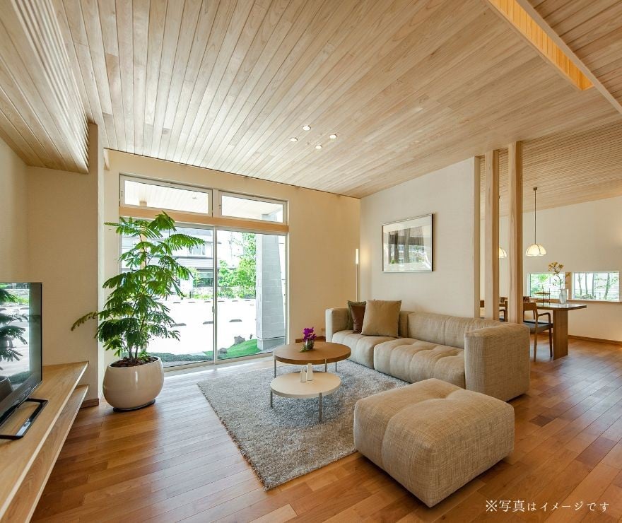- こだわりの内装: 床材には、幅広で木目がはっきりとした明るい印象の新商品ホワイトアッシュを使用しております。