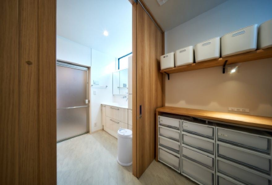 ↓ランドリールーム→WICへ繋がっており、洗濯から片づけまで家事動線がスムーズな間取りです。