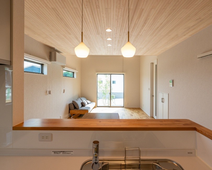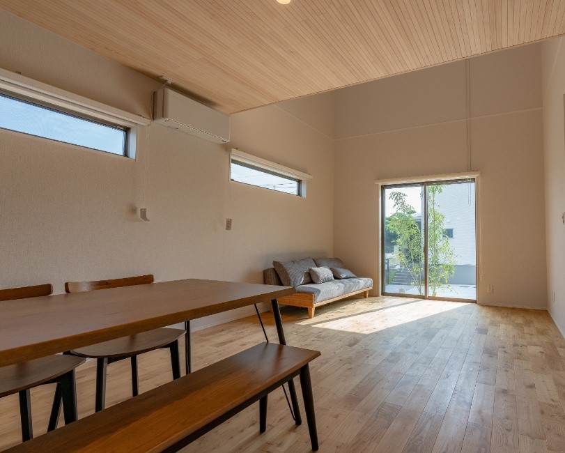 吹抜とハイサイドライトのある開放的なLDKは明るく、掃き出し窓には雨戸がついているので防犯的にも安心🍀