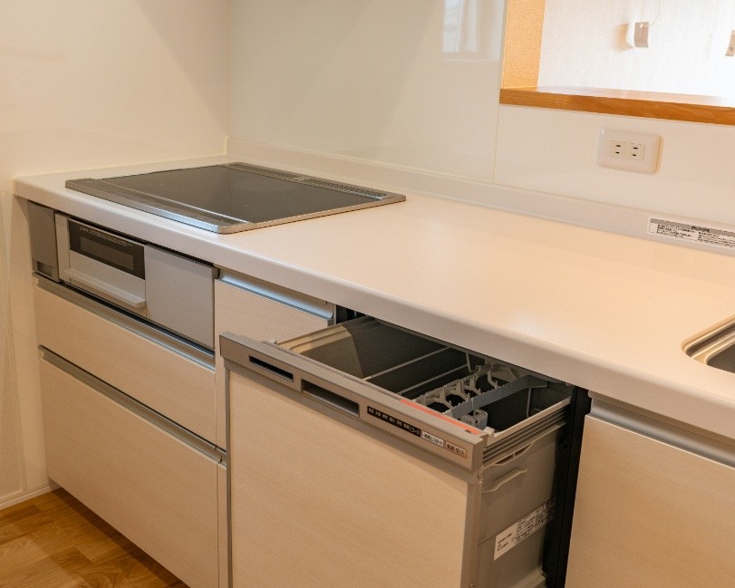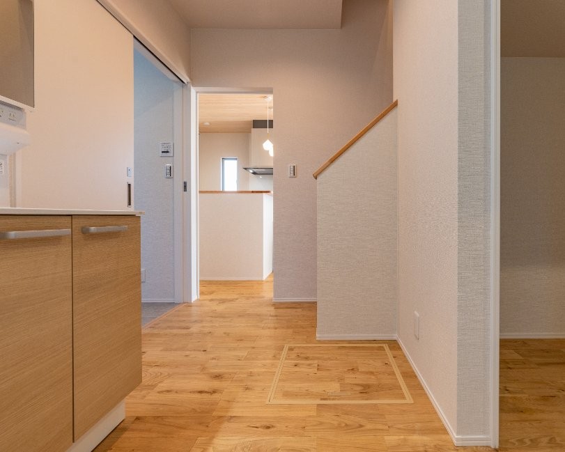 IH3口コンロ+食洗機付きのキッチンや水回りへの動線も、家事効率UPポイントのひとつ。大小ある収納も充実しています🙌