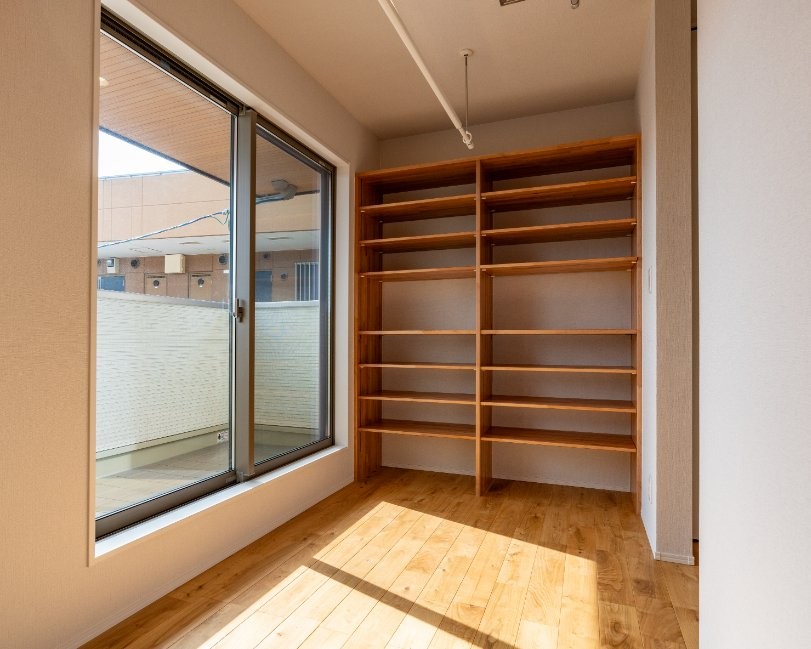 2階には日当たり良好な室内物干しスペースがあり、続くバルコニーにはお布団を干すことも可能です🌞