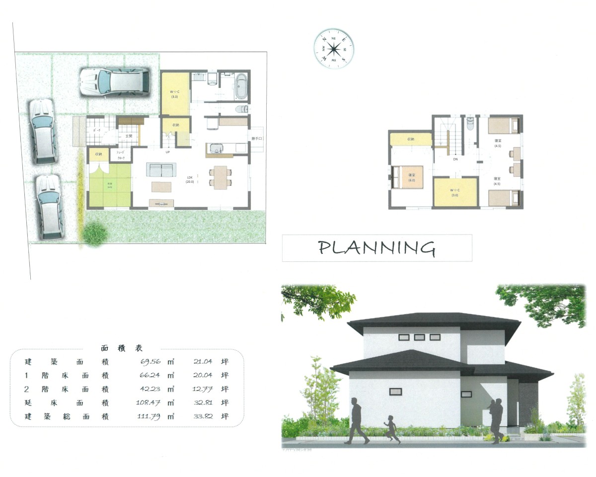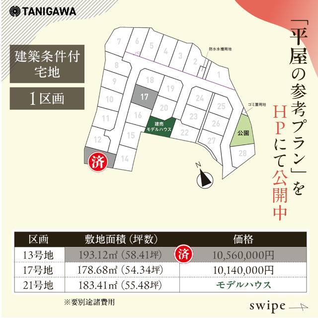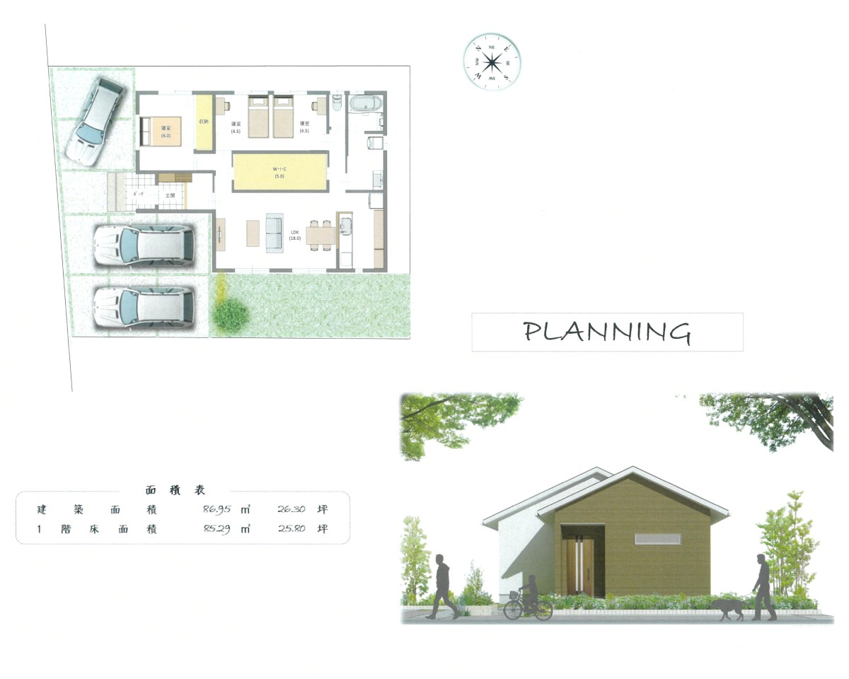 17号地に建てられる、平屋と2階建ての参考プランをご紹介!どちらも駐車スペース2台以上を確保しています。
