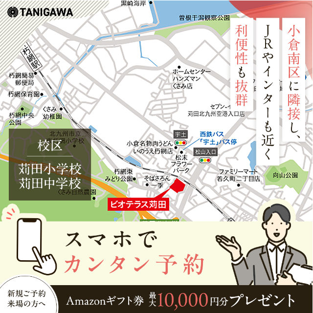 | 備考 | 来場当日の見学予約は、お電話にて承っています。火・水曜日は社休のため、お電話がつながらない場合がございます。お時間によってはご希望に添えない場合もございますので、ご了承願います。 (株)谷川建設 北九州支店(火・水曜日 社休/10:00~18:00) フリーダイヤル 0120-01-3551 TEL.093-931-3551 |