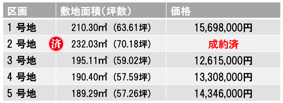 公開中の分譲地情報