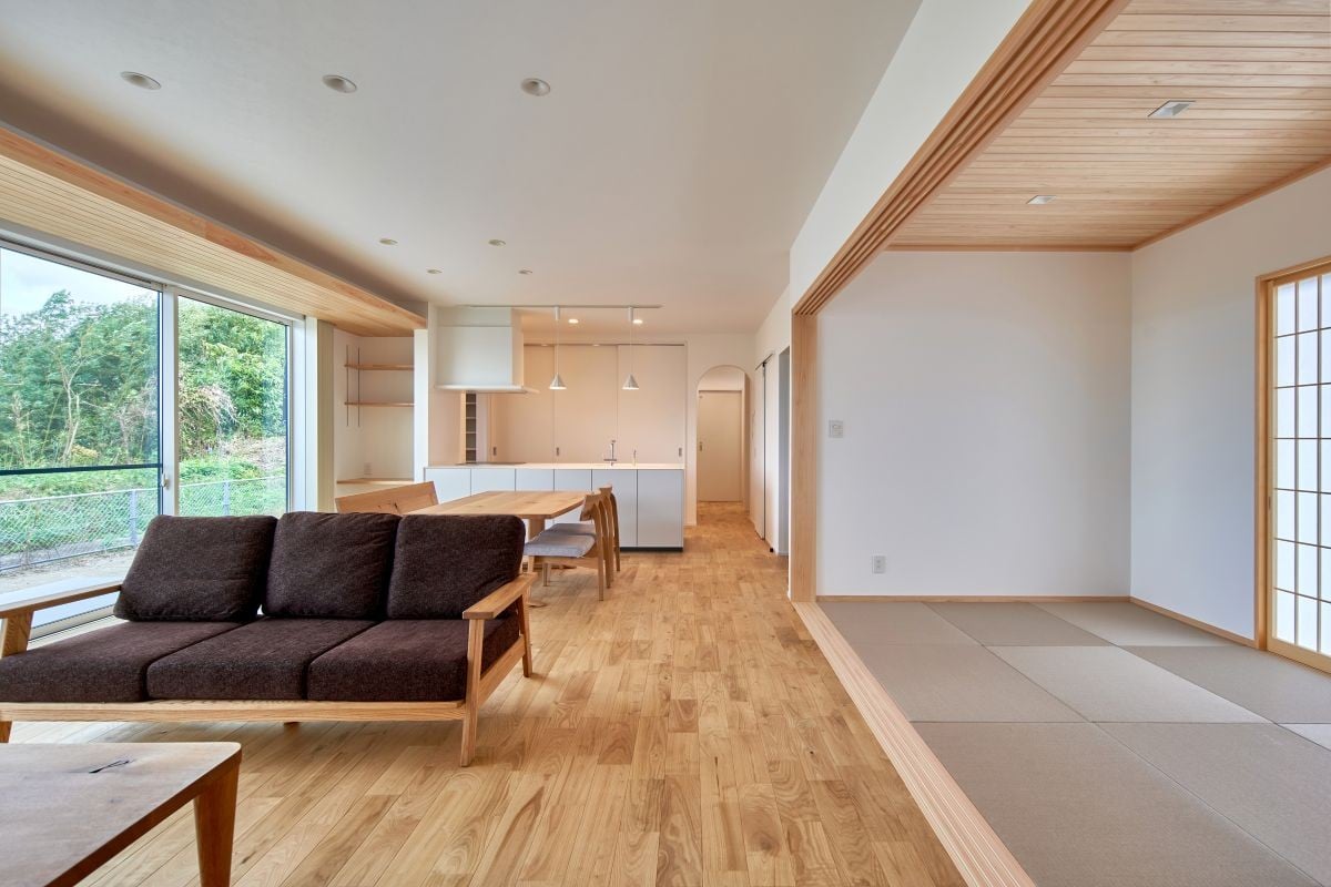 26帖の大空間のLDKにくつろぎの畳スペース(6帖の和室)