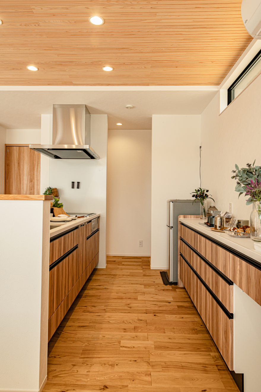 キッチンに立てば、家族の様子を隅々まで見渡せる安心感。住まいの中心が、一番お気に入りの場所になります。