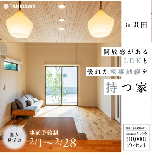 2/1~2/28 事前予約制、苅田町(北九州インター近く)にて無人見学会を開催🏠自然素材で作った谷川建設オリジナルグッズプレゼントも🙌