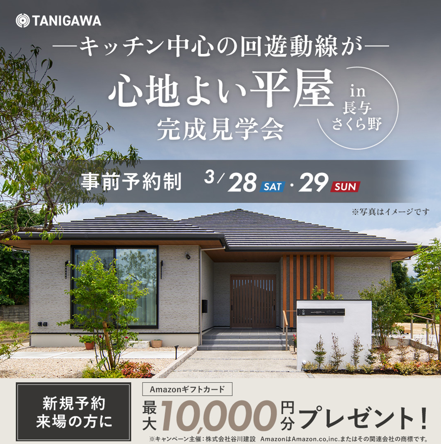 | ご予約 | 事前予約制のイベントで、WEBからのご予約をおすすめしています。「見学予約フォームはこちら」をクリックしてお申し込みください。 当日のご予約はお電話にて承っています。 谷川建設 長崎支店 ※火・水曜日 社休 フリーダイヤル 0120-65-3551 TEL 095-848-3551 |