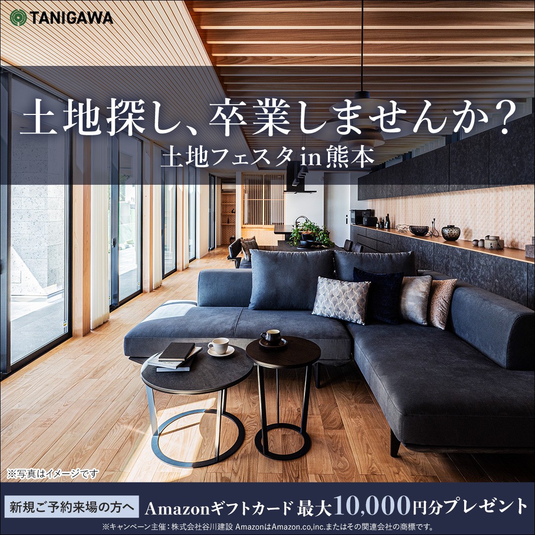 | 開催場所 | ①TKU住宅展示場 住まいランド 谷川建設モデルハウス 熊本市北区室園町1-847 ②総合住宅展示場エコラス 谷川建設モデルハウス 熊本市南区島町4丁目1 ③クロスウェイ広安西 モデルハウス 熊本県上益城郡益城町(益城台地中土地区画整理事業地内) ※現地詳細はご予約受付後に営業担当よりご連絡さしあげます |