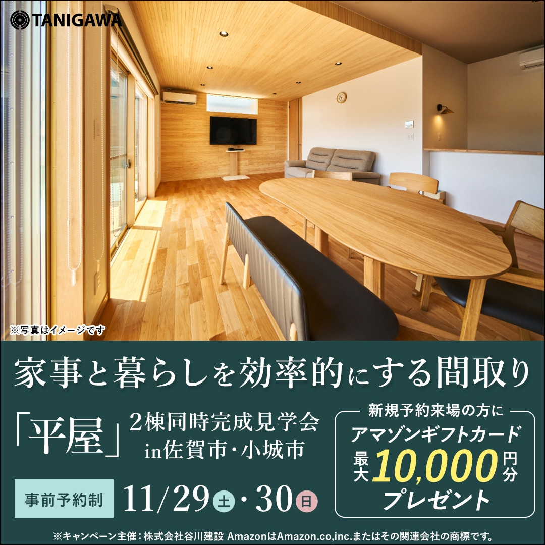 谷川建設には常に見学できる家があります。諫早・大村エリアには展示場2棟、販売中の建売が3棟あります。ネットやSNSなどさまざまな情報を得られる時代ですが、実際に見て、触って、体感して自分たちにあった家づくりをおすすめします。