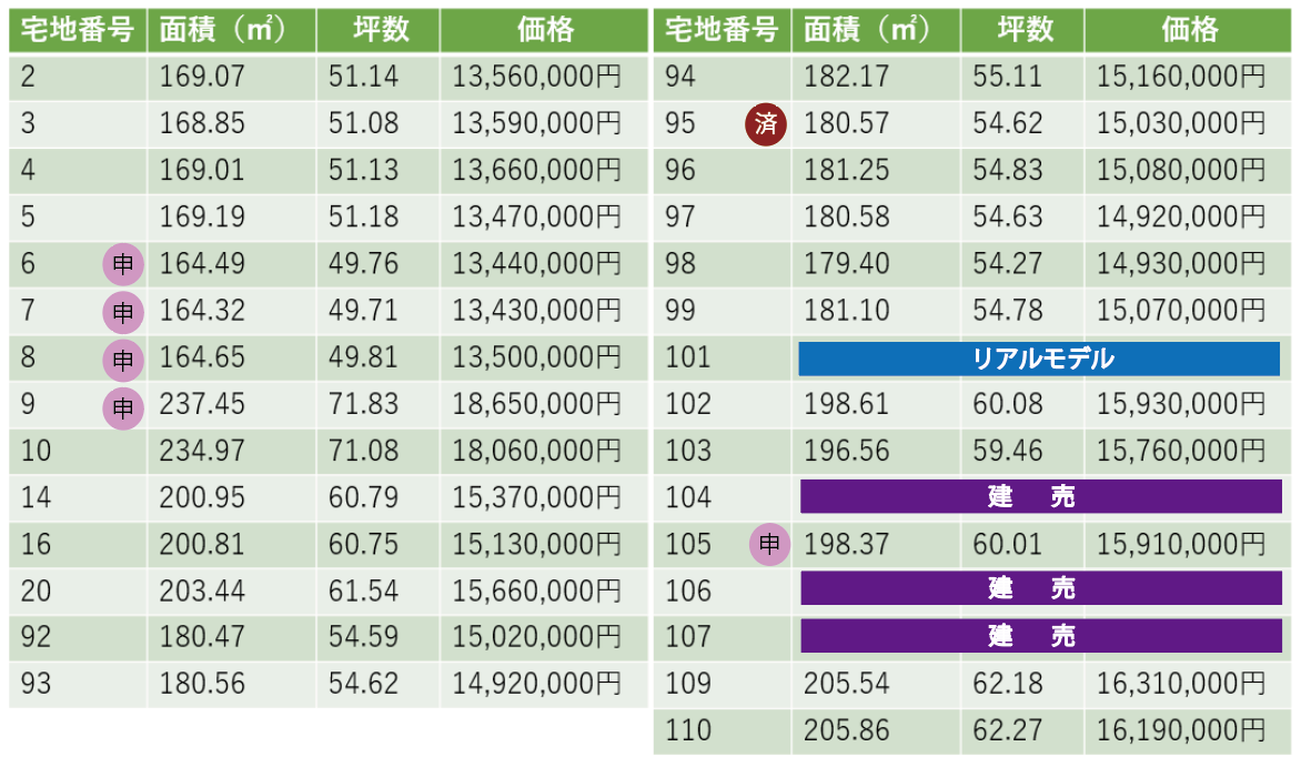 - この土地は、土地売買契約締結後3ヶ月以内に当社と建物請負契約を締結して頂く事を条件として販売します。この期間内に建物請負契約が成立しなかった場合には、土地売買契約は白紙となり、申込金その他お預りした金銭は全額(契約書に貼り付けた印紙代を除く。) 無利息でお返し致します。