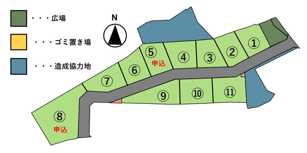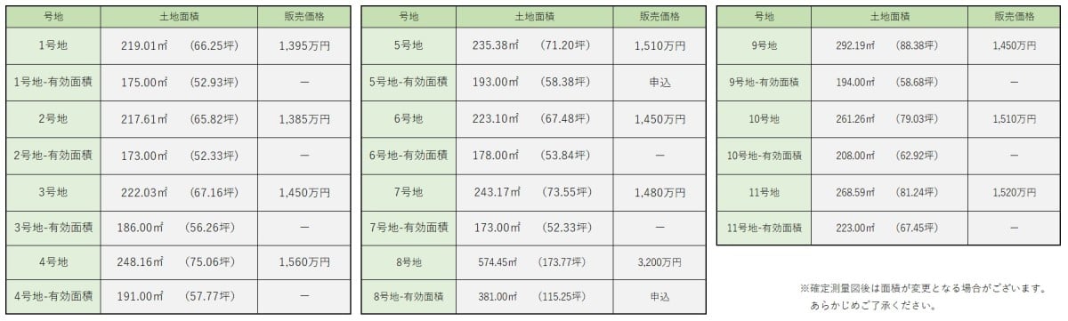 - この土地は、土地売買契約締結後3ヶ月以内に当社と建物請負契約を締結して頂く事を条件として販売します。この期間内に建物請負契約が成立しなかった場合には、土地売買契約は白紙となり、申込金その他お預りした金銭は全額(契約書に貼り付けた印紙代を除く。) 無利息でお返し致します。
