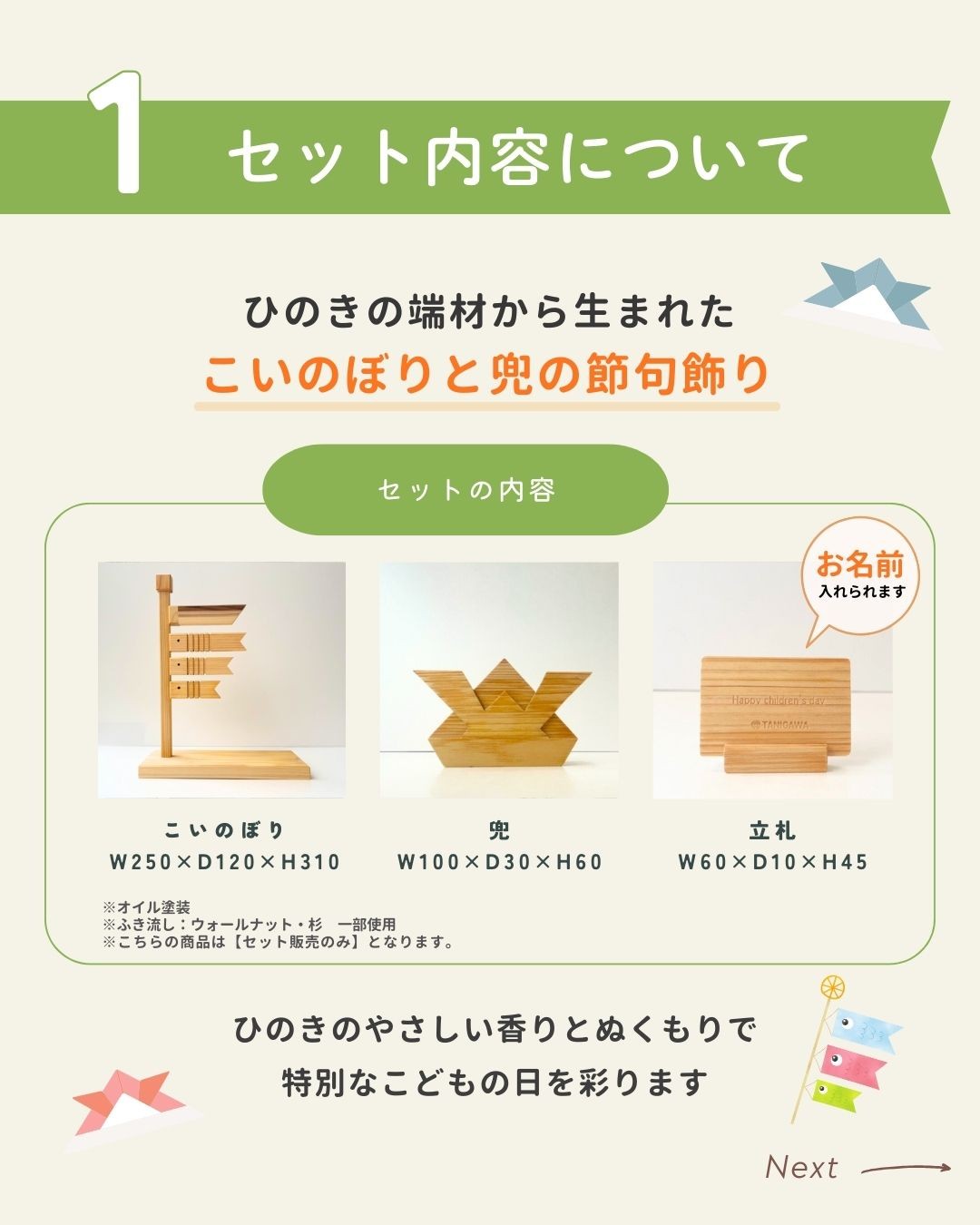 やさしい色合いとひのきの香りが、特別なこどもの日を彩ります。