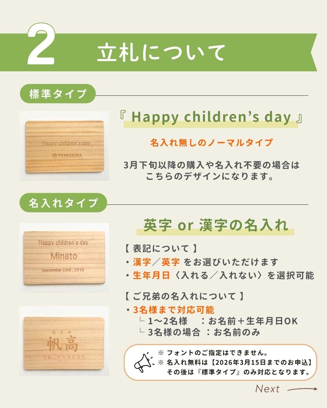 ※名入れ無しの場合は、標準タイプの立札にて、上記期間以降もご購入いただけます。<数量限定>