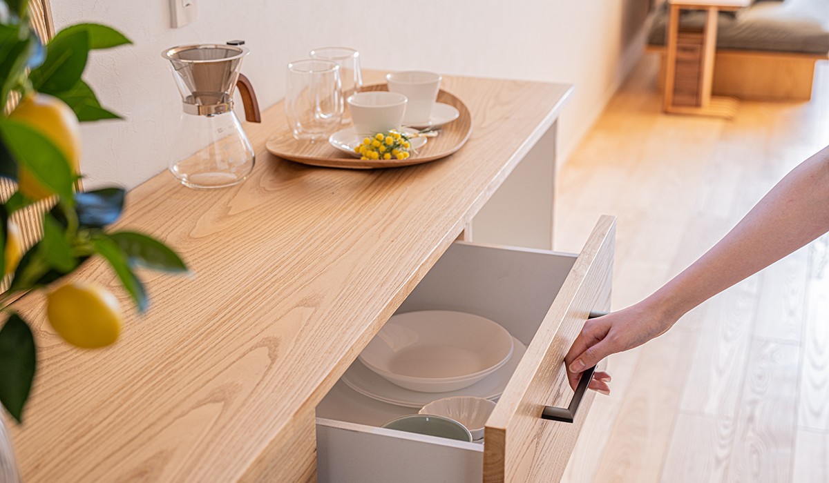 素材の美しさを生かしたシンプルでセンスのある佇まいが、毎日の暮らしに深い満足感をもたらします。 ※TVボード・ソファは対象外