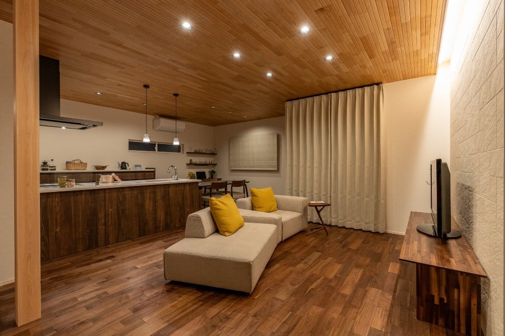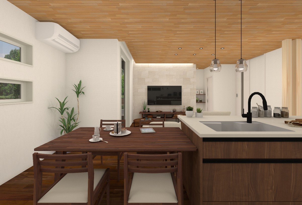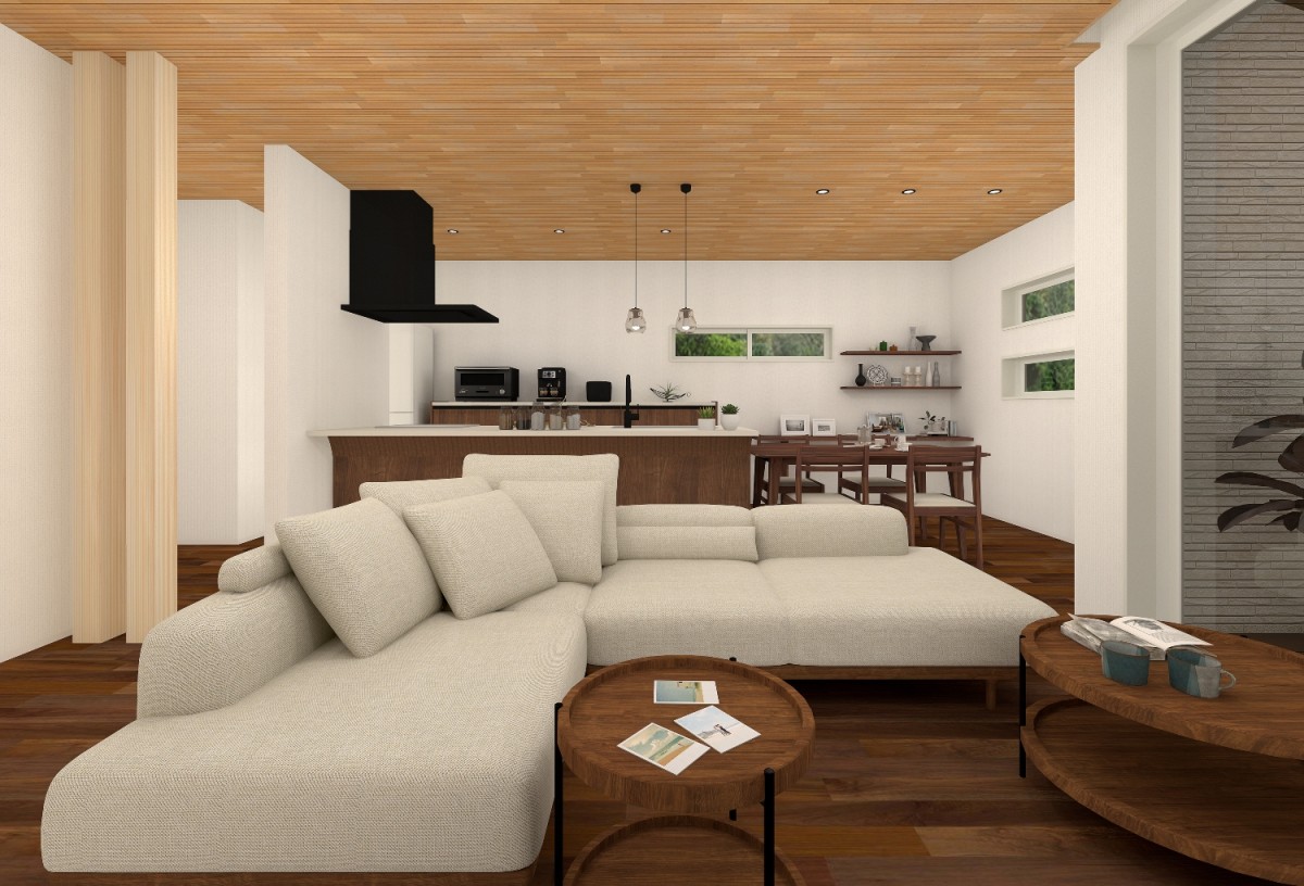 敷地条件を最大限に活かし、2台分の駐車スペースをゆったりと確保。明るいLDKと南面に配置した子ども室が、家族の毎日に心地よい光を届けます。