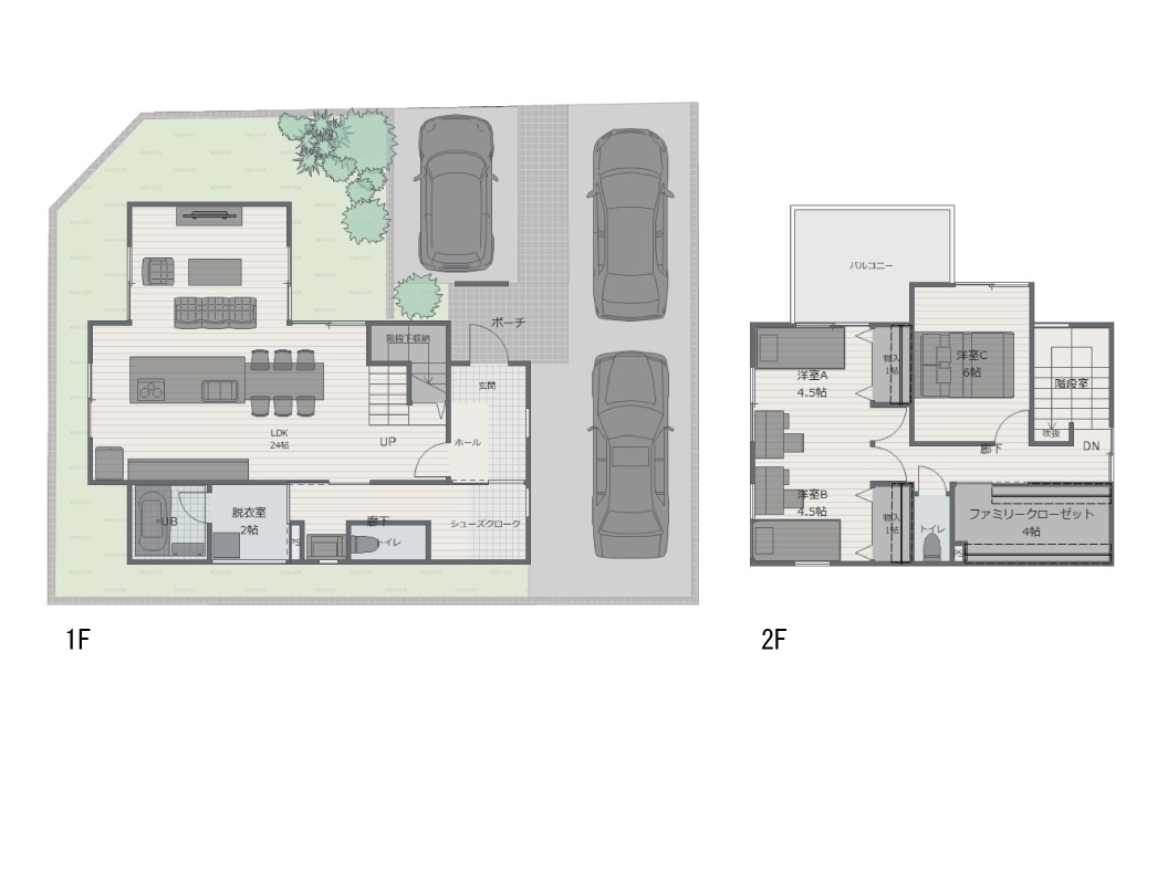 駐車スペース3台 3LDK+ファミリークローゼット+広々バルコニー