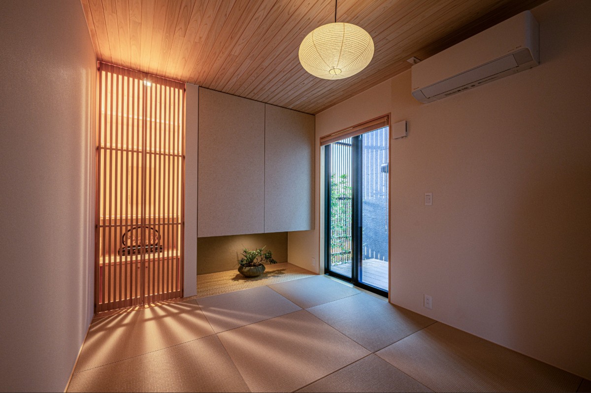 玄関ホールから直接アクセスできる和室は急な来客時でもLDKを通さず案内できる、落ち着いたおもてなしの空間。