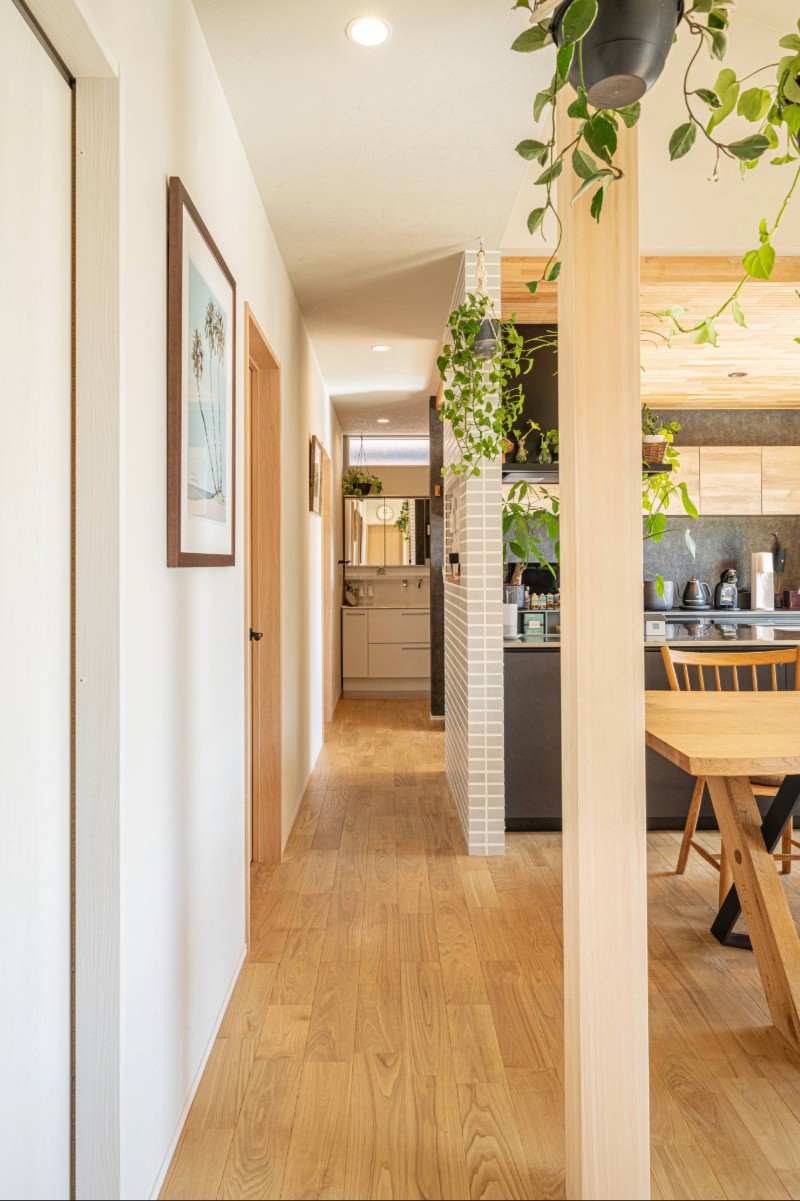 様々な住まいを見学する中で出会った谷川建設のモデルハウスでは、玄関に入った瞬間の檜の香りと、木に包まれる心地よさにご夫妻もお子さまたちも自然と惹かれたそう。