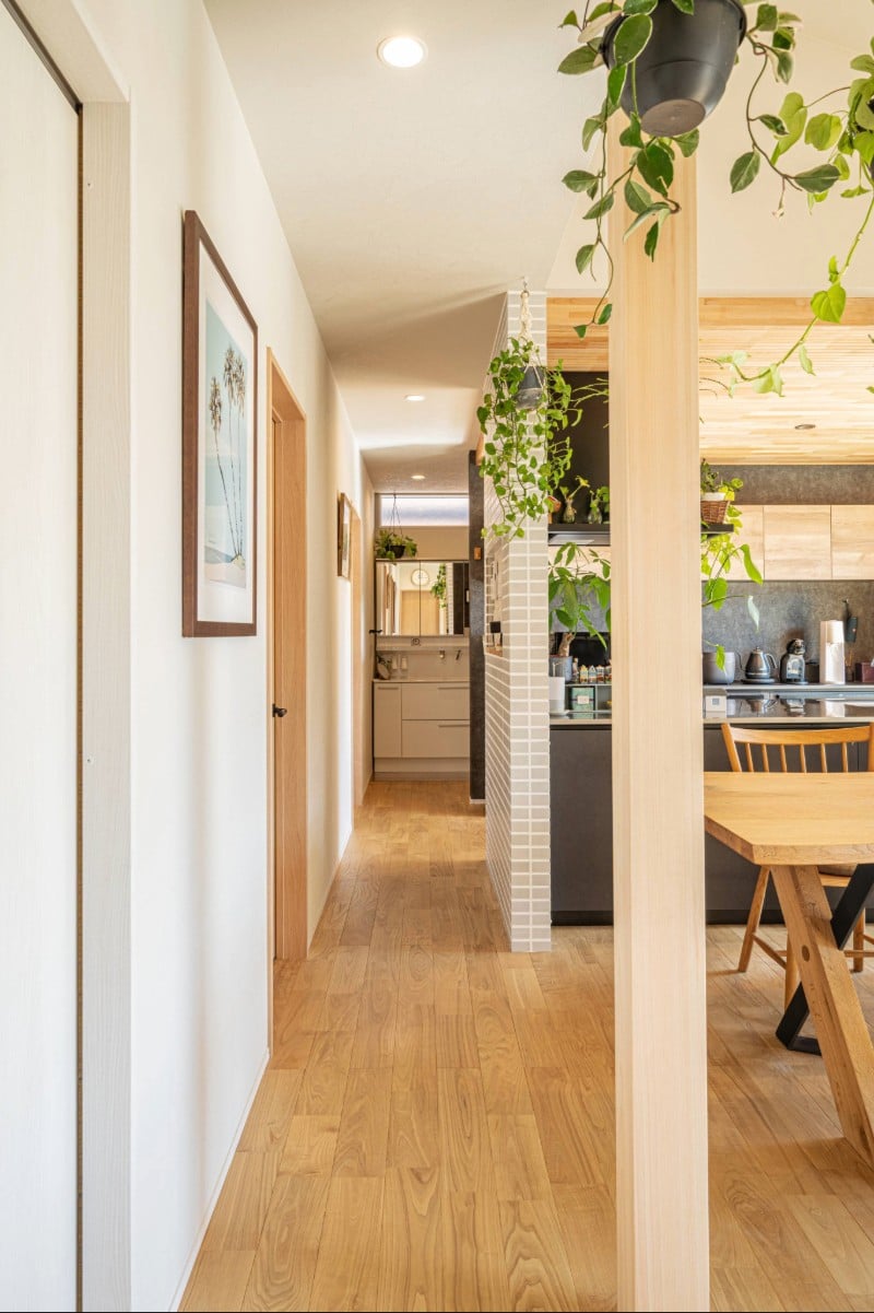 グリーンと無垢材が織りなす癒しの平屋