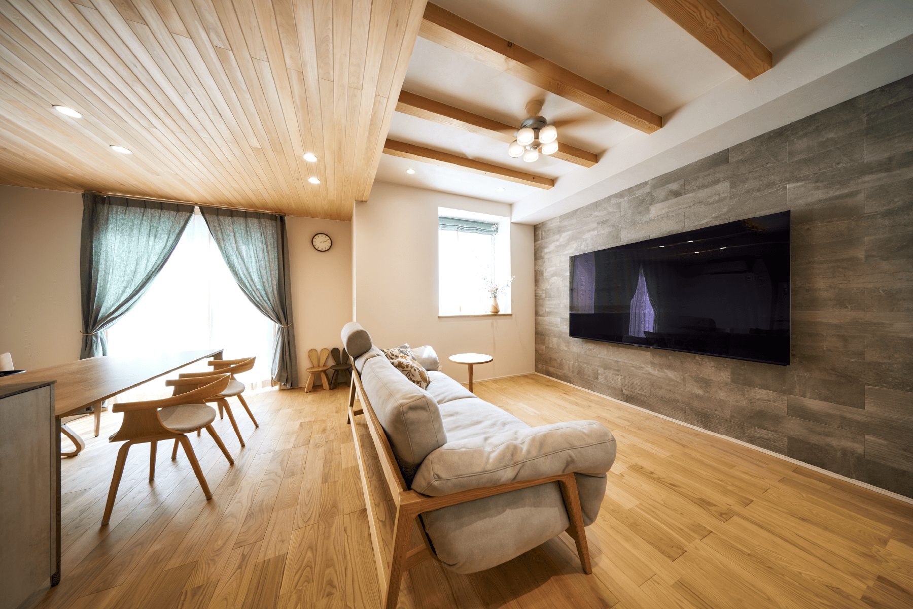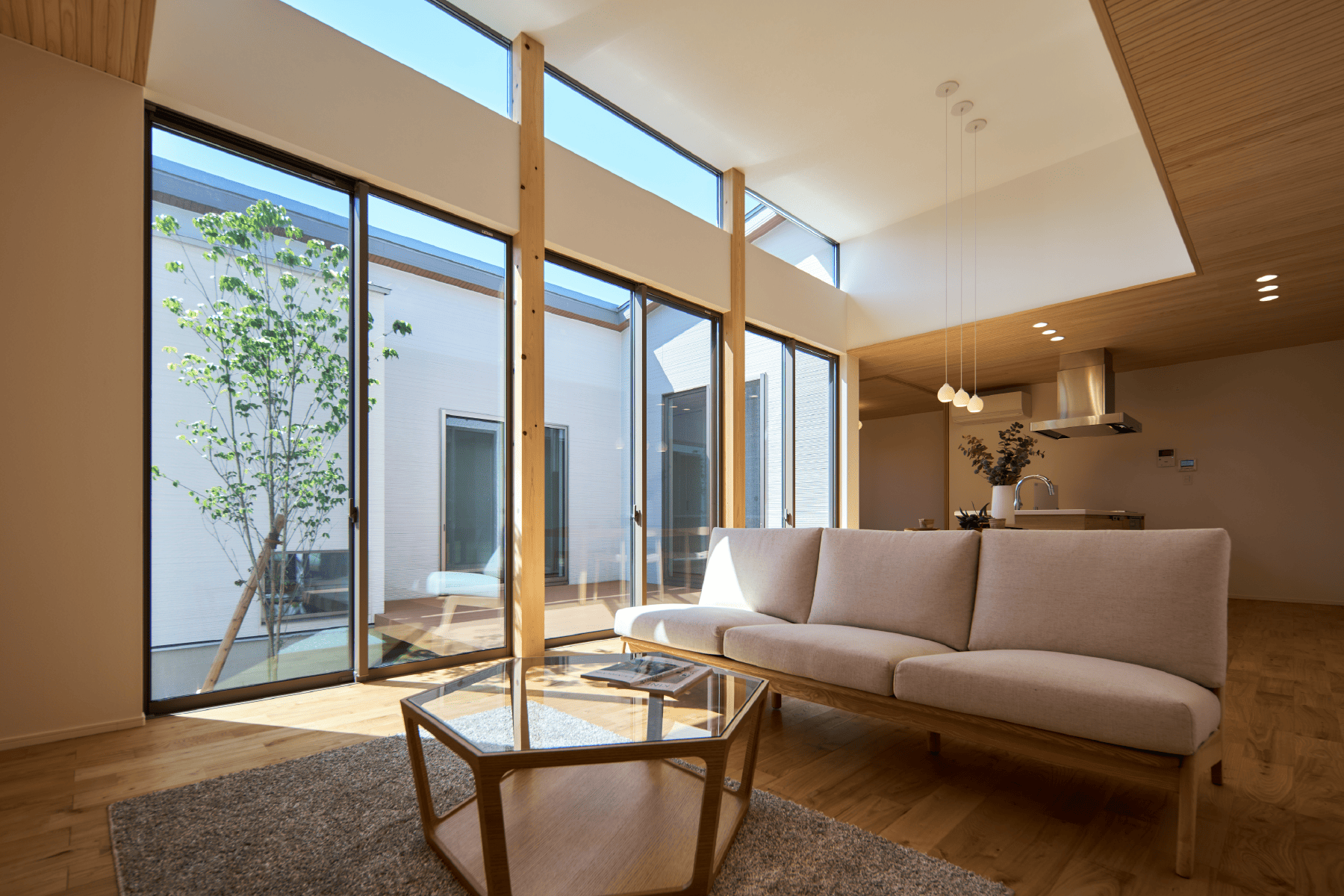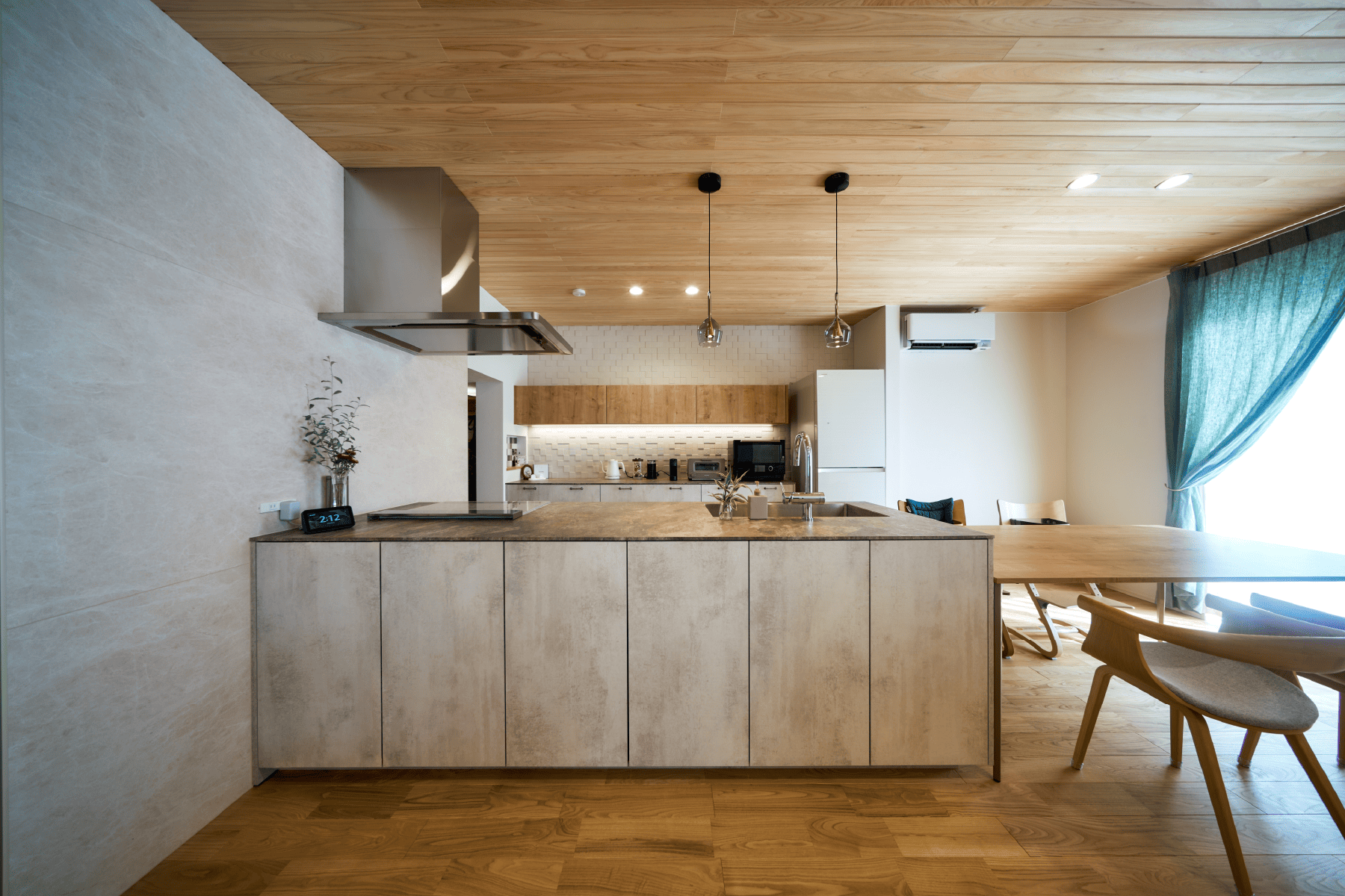 無垢の木や自然素材をふんだんに使った空間は、あたたかみと静けさに包まれた、“ほっと整う”暮らしを叶えます。