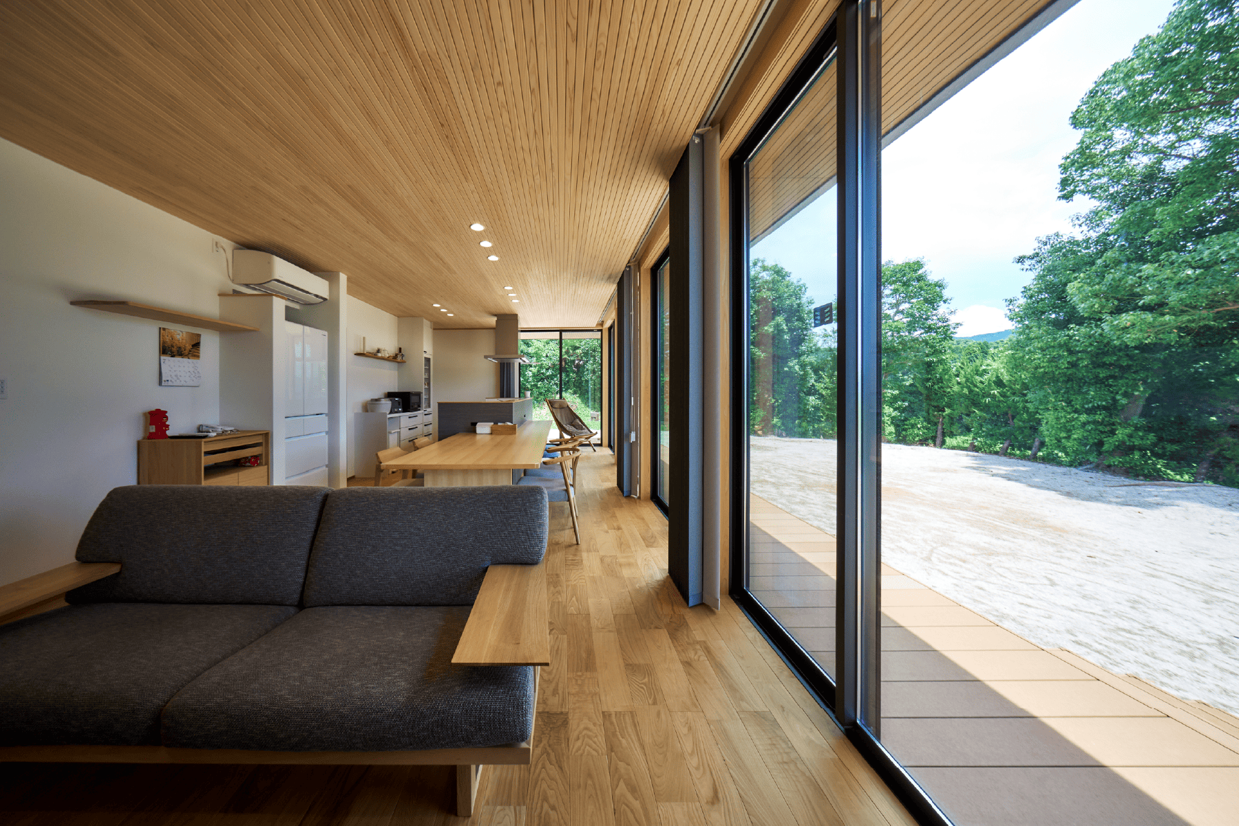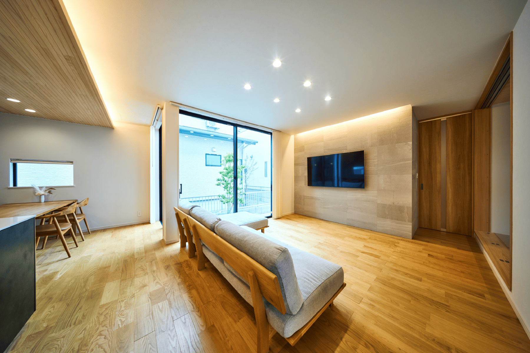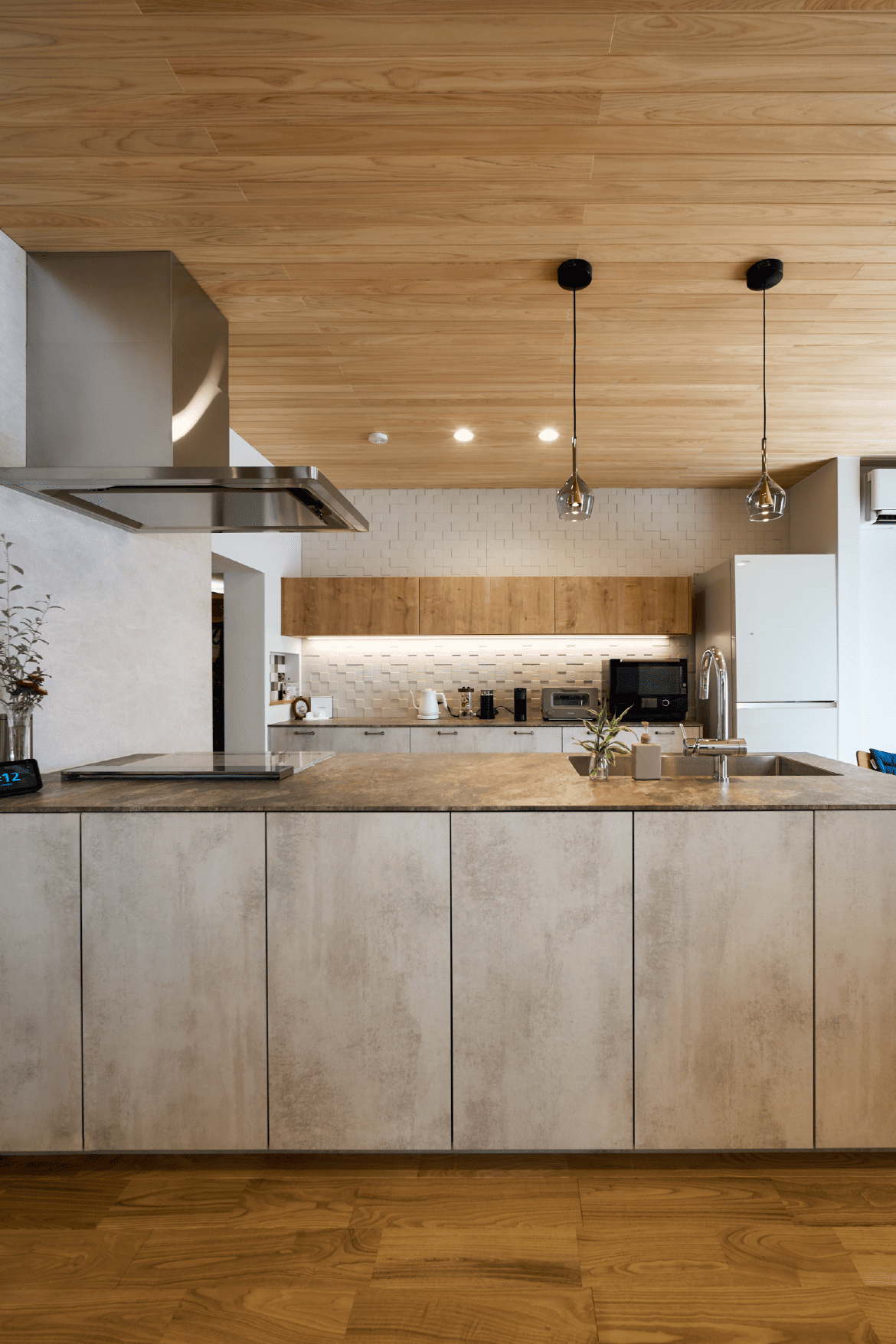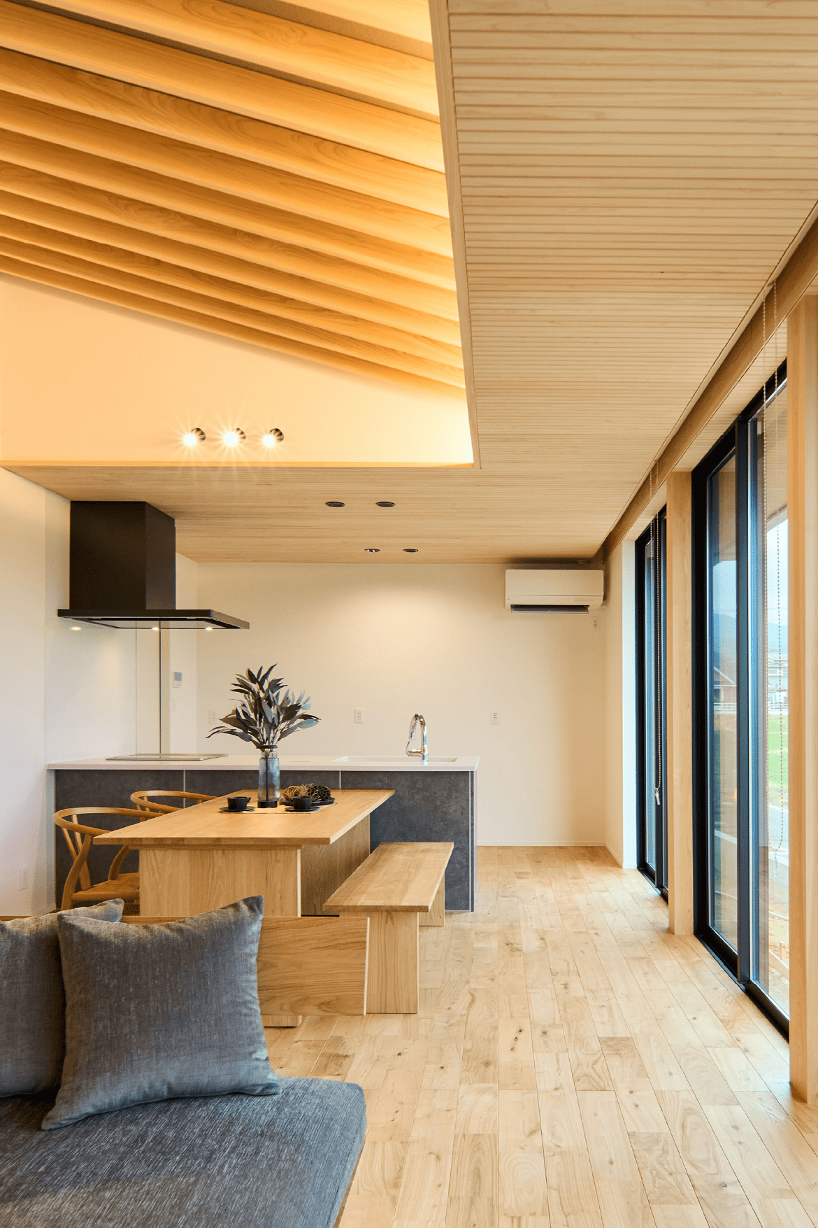 無垢の木や自然素材をふんだんに使った空間は、あたたかみと静けさに包まれた、“ほっと整う”暮らしを叶えます。