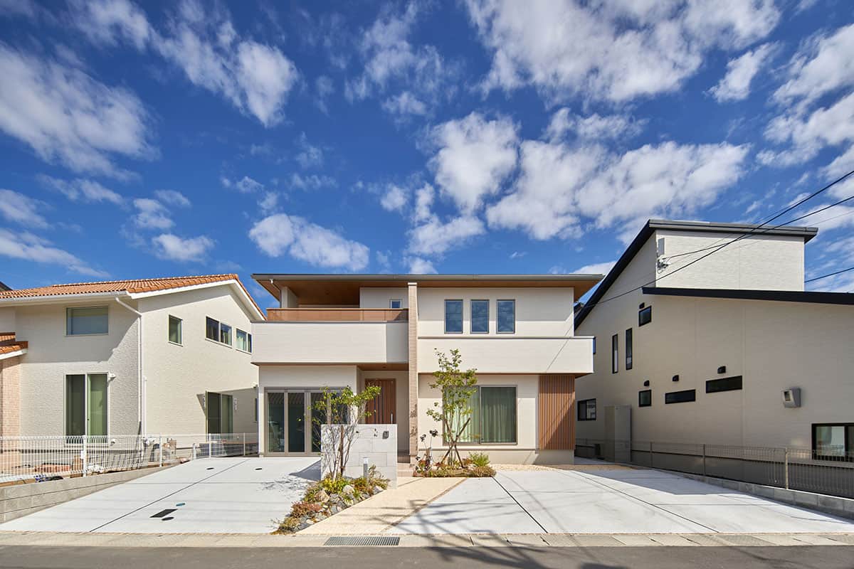 道路沿いにシンボルツリーが並び、緑豊かな街並みをデザインします。オープン外構で統一することで街を彩る木々が視界に広がり、季節を感じることができます。