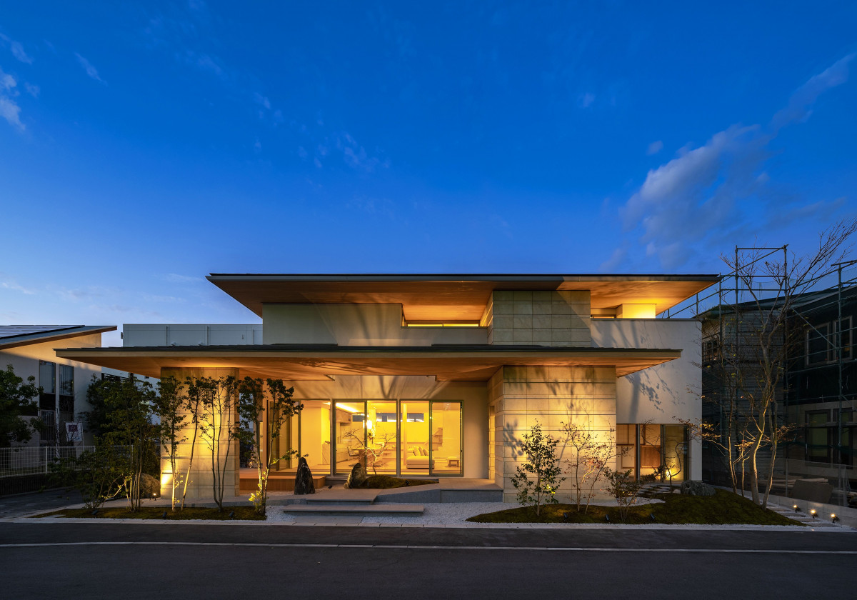 和の雰囲気を感じさせる空間とモダンなデザインが相まって美しい住宅となっている。